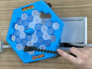 「こおりわりゲーム」は上に乗ったペンギンを落としたら負けのゲーム