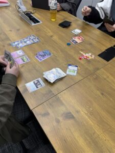 利用者さんがポケモンカードやデュエルマスターズのカードをたくさん持ってきて