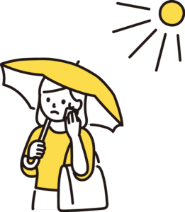 ②日傘や帽子を使う・・・日傘なら紫外線防御率の高いものを、帽子ならつばの広いものを選びましょう。