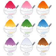 「かき氷」や「水羊羹」、「アイスクリーム・ソフトクリーム」「シャーベット」「フルーツゼリー・寒天」「わらび餅」「水まんじゅう」「若鮎」などの定番商品が数多く並んでいます。