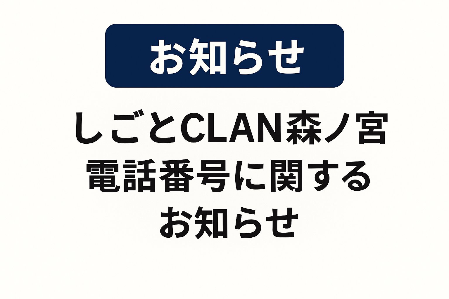 「しごとCLAN森ノ宮」電話番号の開通に関するお知らせ