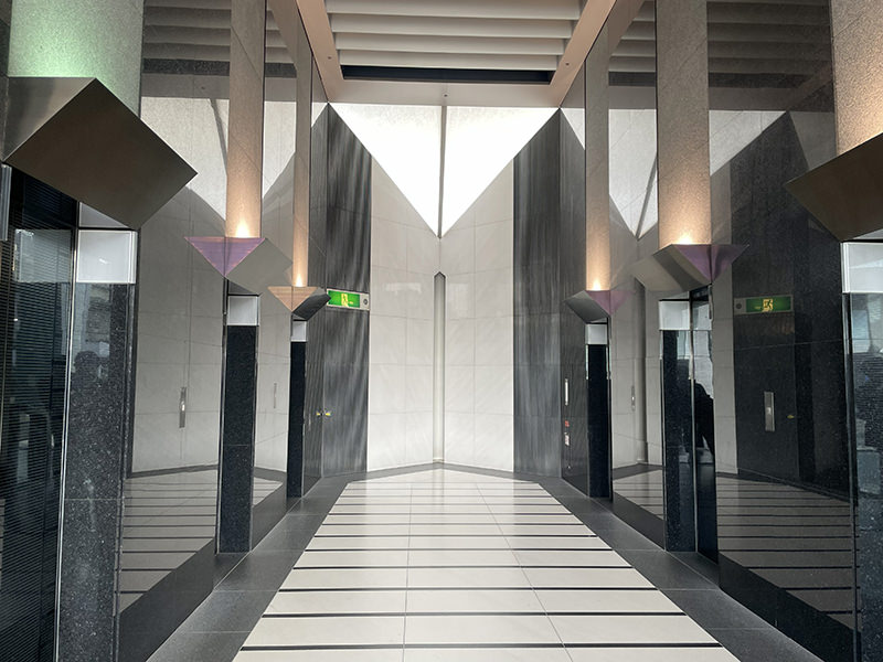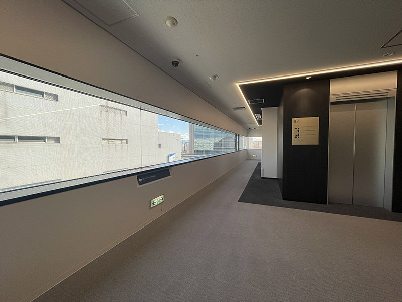 オフィス棟エレベーターの方向へ進みます